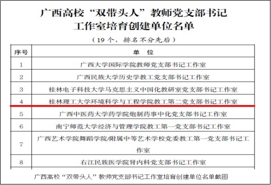 广西高校“双带头人”教师党支部书记工作室培育创建单位
