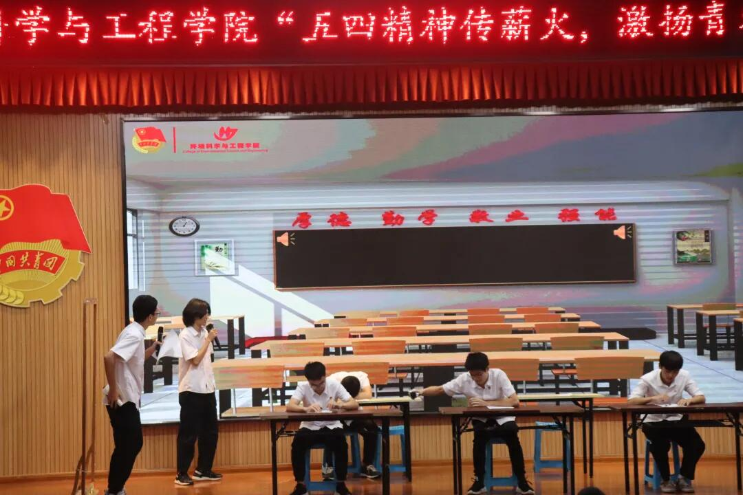 本次活动分为 “追寻红火岁月”、“奏响青春乐章” 上下两场主题。活动初,视频《回首五四》带领同学们回顾了捍卫国家民族尊严的大旗,掀起了全国人民爱国热情高潮的五四运动历史。紧接着,水文与水资源20-1班团支部成员带来的诗朗诵《五四》展现当代青年人身上不服输,敢拼搏的韧劲。接下来进行了五四知识的问答环节,通过与同学们互动,让活动更增趣味与活力,也让同学们对五四这段历史有了更多了解。