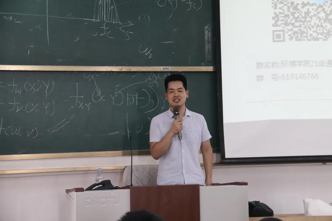 新学期伊始,为抓好新生疫情防控与校园安全,更好更积极地迎接新学期的开始。2021年9月12日,环境学院党委书记姜子亮、副书记郝文佳,副院长黄亮亮、李海翔及全体学工老师一同为学院2021级新生上了一堂生动的大学启蒙第一课。