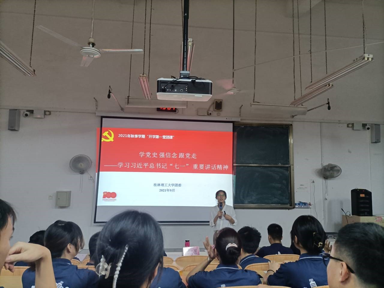 9月18日晚,太阳集团2138网址在致远楼04109教室开展2021秋季学期主题为学党史强信念跟党走,学习习近平总书记“七一”重要讲话精神的“第一堂团课”。李心愿老师阐述了“七一”讲话的重要意义,她提到,“七一”重要讲话是马克思主义的纲领性文献和政治宣言,是向第二个百年奋斗目标迈进的总动员,是我国全面建成社会主义现代化强国的根本遵循。同学们从中了解到“七一”重要讲话既是对中国共产党百年奋斗历程的全面总结,也是中国共产党团结带领人民以史为鉴、开创未来的行动指南。接着,李心愿老师就中国共产党诞生的必然性讲解了中国共产党诞生,并提及“四大成就”:新民主主义革命时期中华人民共和国成立;社会主义革命和建设时期,党的十一届三中全会的召开;改革开放和社会主义现代化建设新时期,党的十八大召开;中国特色社会主义新时代,党的十八大召开至今。