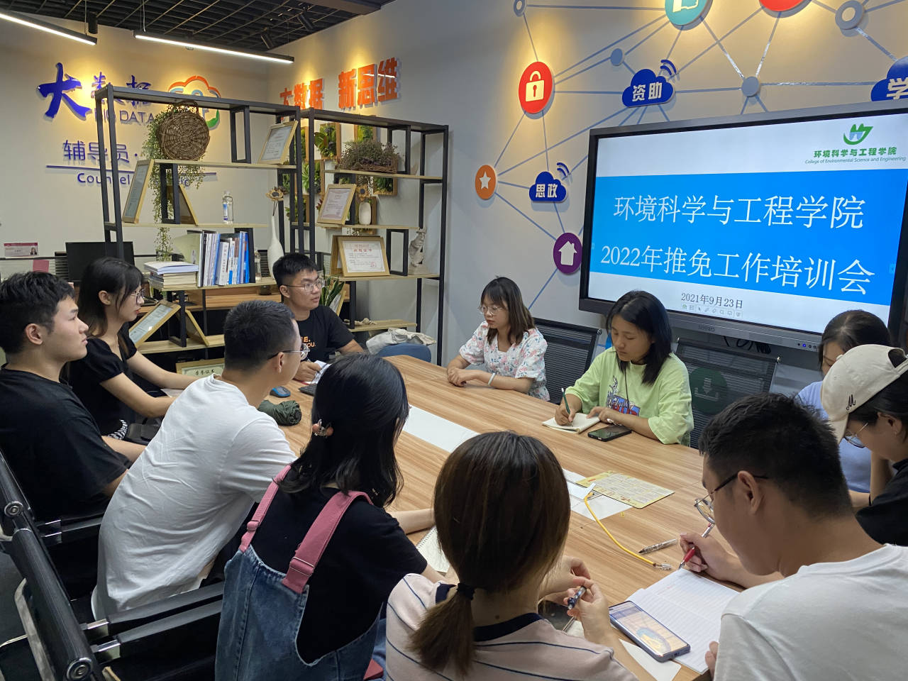 9月23日晚,太阳集团2138网址在12408大数据工作室召开2022年推荐优秀应届本科毕业生免试攻读硕士学位研究生工作培训会,2018级获得推免资格的同学参加会议,会议由辅导员潘泓序主持。
