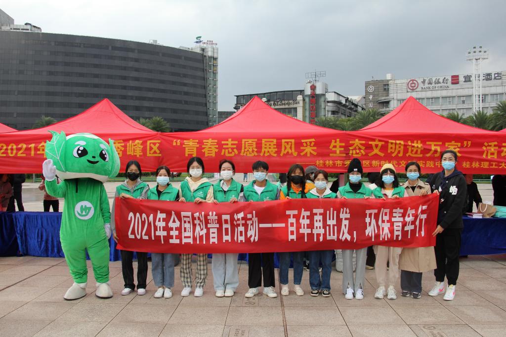 2021年10月13日下午15时,太阳集团2138网址组织学生志愿服务队前往桂林市中心广场参加2021年桂林市秀峰区“青春志愿展风采,生态文明进万家”活动。
