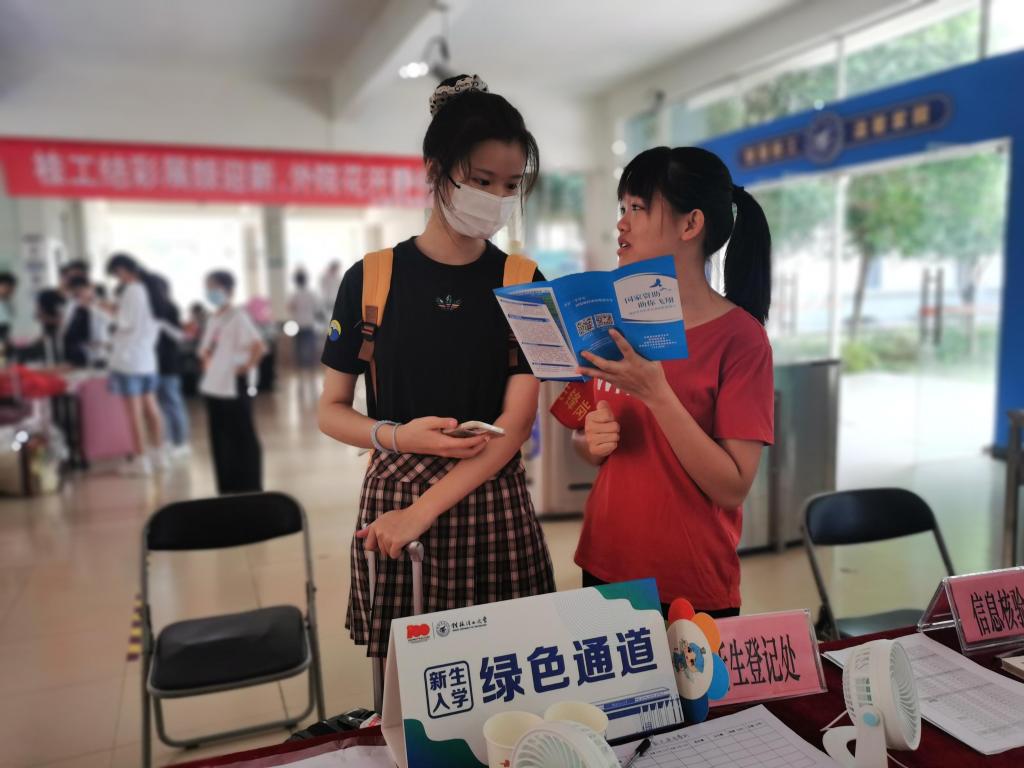 9月11日-9月12日,环境学院开展宣传大使为新生宣传资助政策活动,学院在新生招待处设置绿色通道,资助宣传大使李学强、韦春伊在设点绿色通道处为新生进行资助政策答疑解惑。