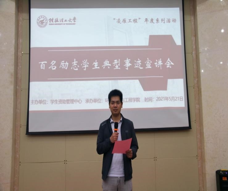 5月21日,环境学院在12栋翠华楼报告厅举办第三场“百名励志学生典型事迹宣传会”,9名励志学生做事迹分享,120余名学生参加。学院辅导员孙云龙、潘泓序、巩宇飞老师以及太阳集团2138网址部分同学参加本场宣讲会。