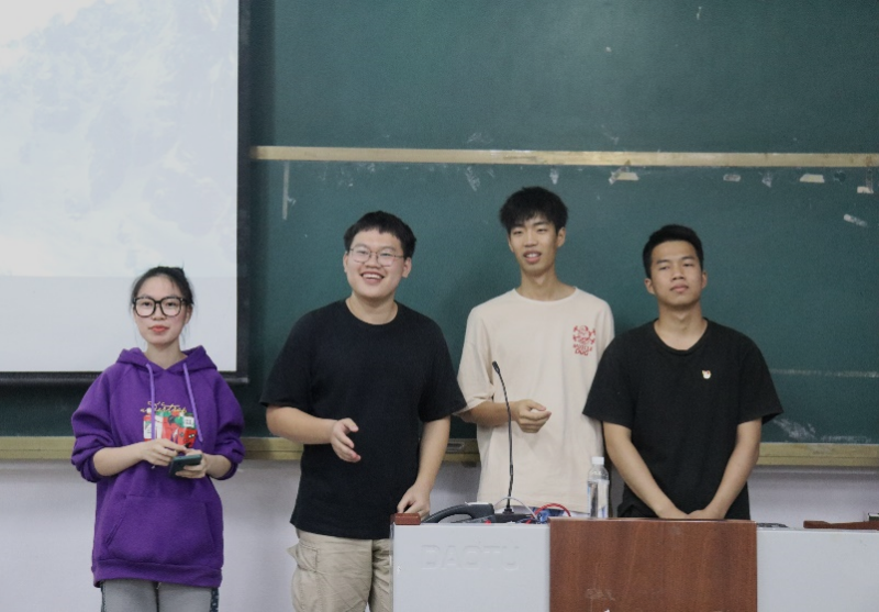 首先,主持人简要介绍了宣讲团成员,并邀请孙云龙老师上台致辞。孙云龙老师表示此次宣讲会是一次很好的学习机会,学长学姐们的考研经验能更好地帮助同学们找准方向,少走弯路,成功上岸。紧接着,四位宣讲人通过PPT向同学们分享在不同的领域中的学习经验和成就。其中,杨智均同学分享他的考研生活作息和考研方法;朱鹏锟同学分享考研的基本常识;李远俊和朱晶晶同学则是就自身考研经历展开宣讲。宣讲互动问答环节,四位宣讲人耐心详细地解答同学们提出的问题,让同学们对考研有了进一步的了解。最后,老师们为他们颁发聘书并合影留念。