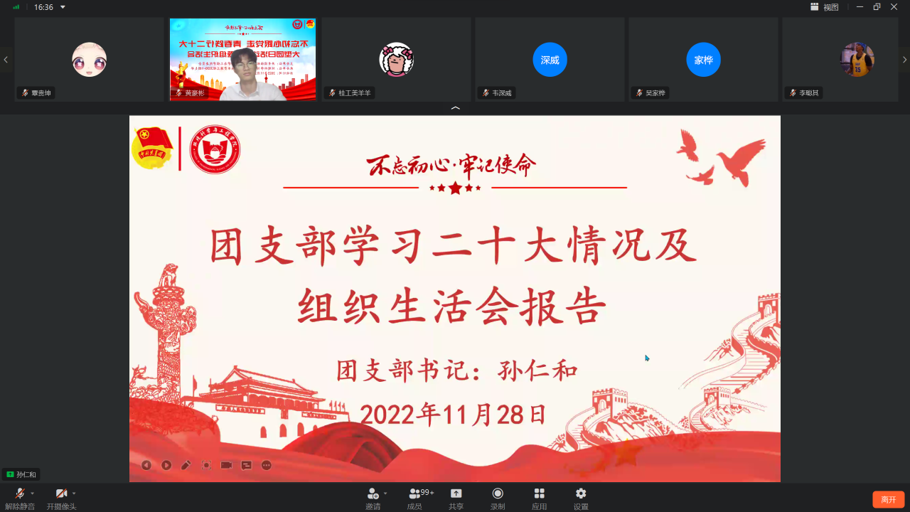 孙仁和同学汇报团支部学习二十大精神情况