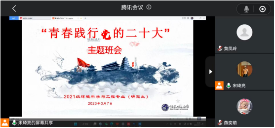 唱响奋进新征程、建功新时代的主旋律。让青春的力量在时代的洪流中乘风破浪奋勇前行,让青春的创造在复兴的征程中披荆斩棘高歌猛进,才能不断推动中华民族砥砺前行,不断夺取新时代中国特色社会主义的新胜利。本次主题班会落实了学校思想政治工作的要求,为研究生的思想引导和素质提升起到了积极的促进作用。