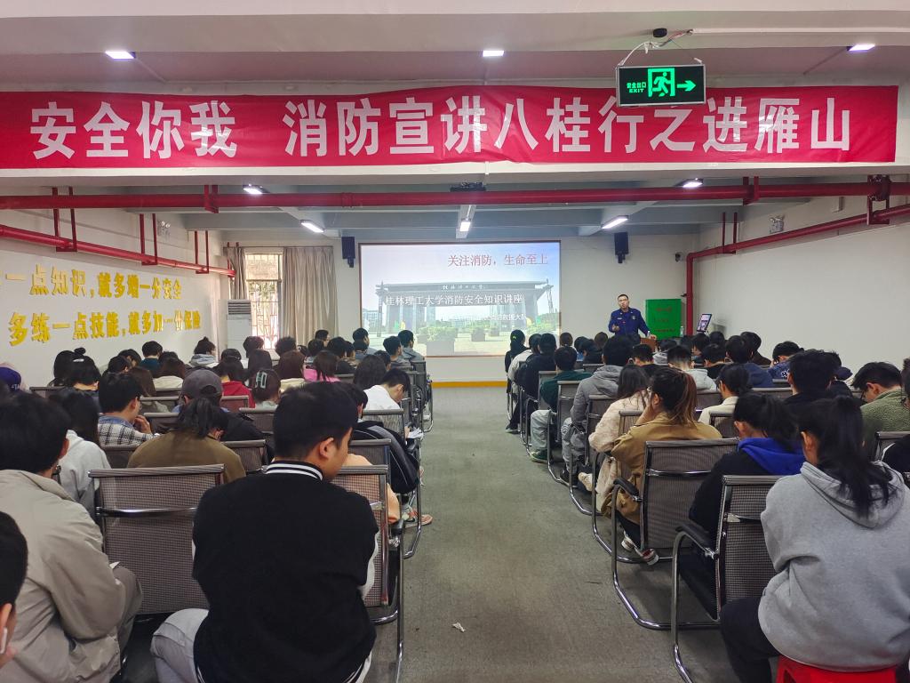为进一步加强学院消防安全工作,排除校园安全隐患,向学院师生普及防火防灾安全知识,切实提升太阳集团2138网址师生面对火灾时的救护能力和应变能力,3月13日下午,太阳集团2138网址联合学校武装部、保卫处和雁山区消防救援大队举办了消防安全知识讲座和现场演习。