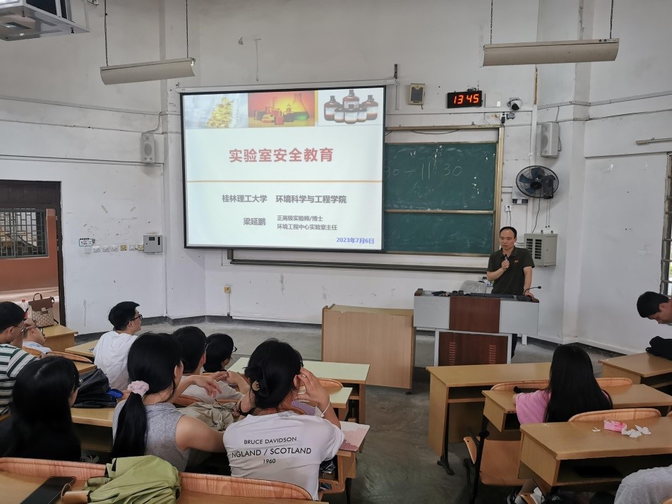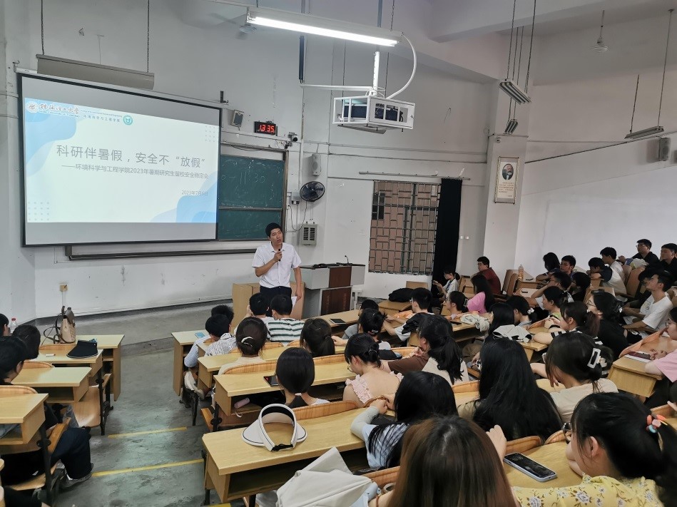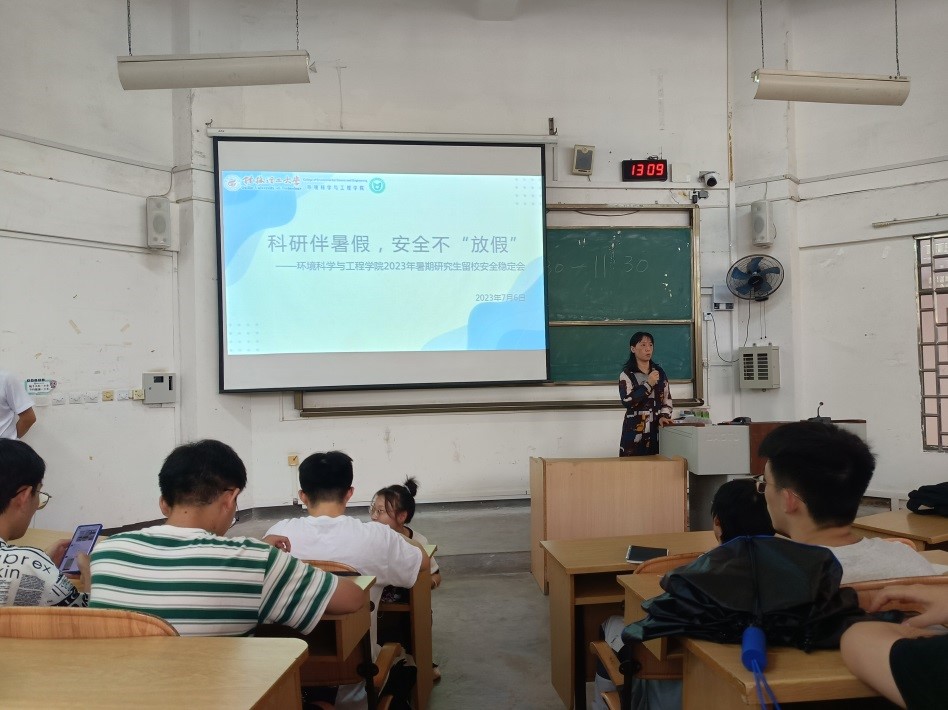 为保障2023年暑期学院安全工作稳定运行,7月6日下午,太阳集团2138网址,2138cc太阳集团官网入口在雁山校区教5楼的05101阶梯教室召开暑期留校研究生安全教育大会,出席会议的有学院领导李艳红副院长、郝文佳副书记、梁延鹏主任、宋晓红副主任、环境工程中心实验室教师、以及暑期留校研究生,会议由郝副书记主持。