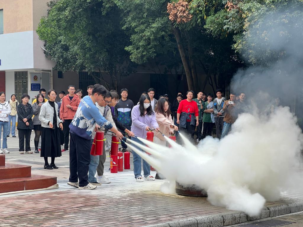 在学习活动中,学校安全教育基地的老师通过列举高校真实案例、播放典型案例视频等方式,向同学们讲解了国家安全、交通安全、防火、防诈骗、禁毒、自救等11个方面的安全知识。基地内还设置了体验区,同学们听完老师的讲解可以直接进行操作体验,以巩固所学习到的知识。随后,老师利用现场的模拟人偶向同学们详细讲述心肺复苏的正确步骤和注意事项,并亲身示范。最后,同学们在安全教育基地的空地前体验了如何使用灭火器和消防栓进行灭火。