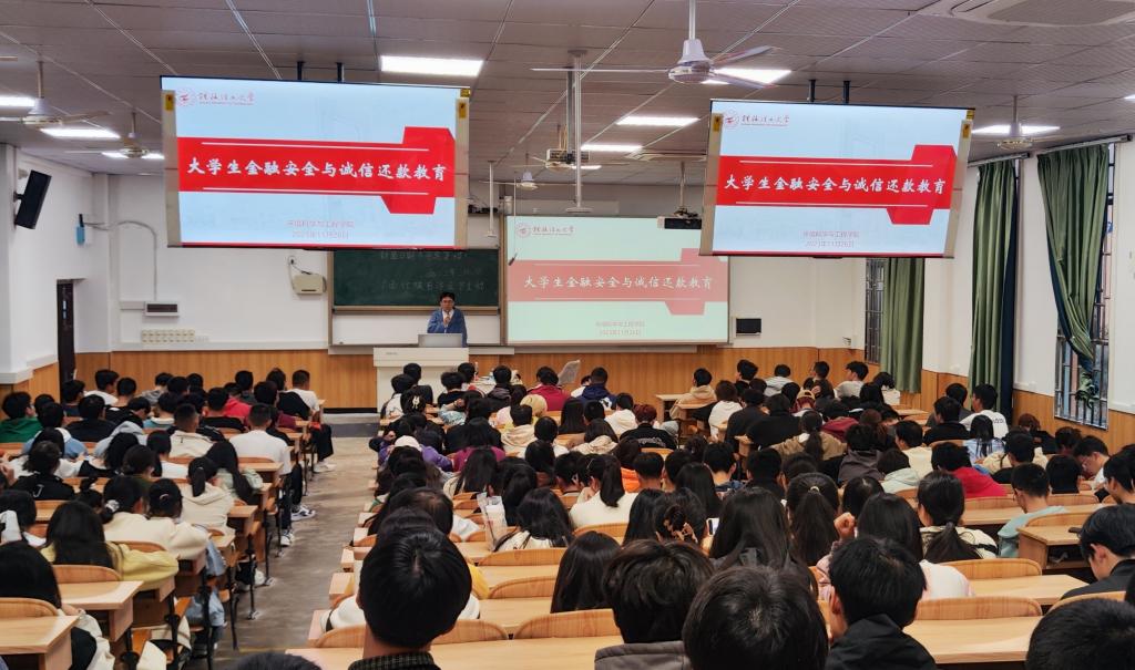 为加大基本金融知识的普及力度,引导贷款学生诚信还款,弘扬“守信为荣、失信可耻”的观念。11月26日晚,太阳集团2138网址,2138cc太阳集团官网入口开展以“诚信还款与金融安全”为主题的教育活动。