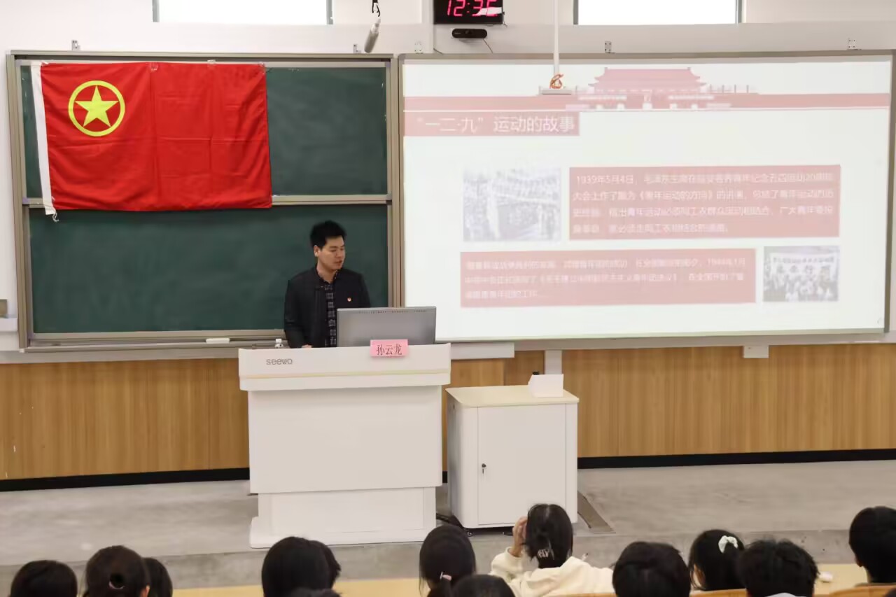 在培训班第二讲中,张云龙老师播放三个有关共青团发展历程的视频,并对共青团的诞生、改名及团的的十九次中国共产主义青年团全国代表大会作出了详细讲解,以团的性质为切入点,紧实结合百年团史的发展脉络,教育引导各位同学要培把握历史大势、担当历史责任,汲取自信奋斗的力量。