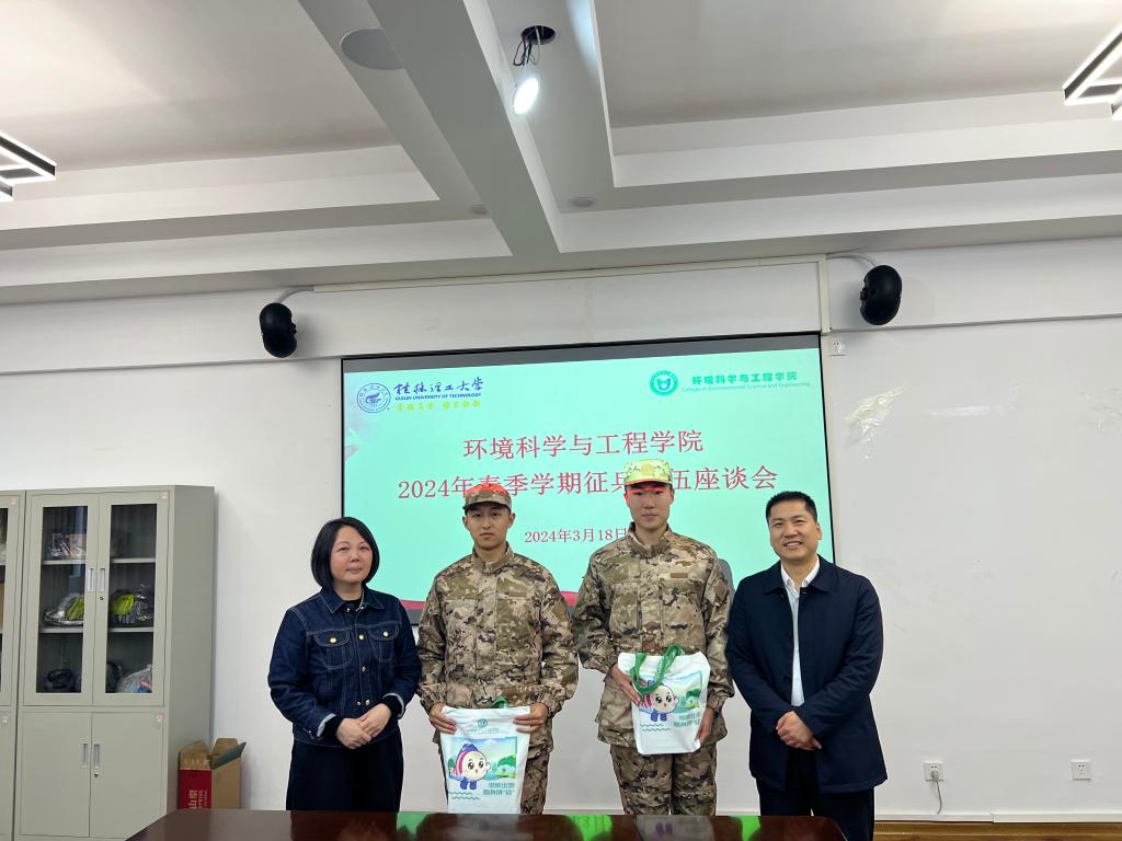 座谈会上,两名入伍学生分别作自我介绍并发言。学院党委书记代武社希望两名入伍在军营认真学习党的创新理论和军事知识,苦练军事技能,听从指挥,尊重领导,团结战友,严格遵守部队纪律,努力把自己锻炼成为思想政治强、军事技精、作风纪律严、完成任务好的优秀军人。学院院长曾鸿鹄针对学生关注的入伍政策和职业发展等进行了讲解,并希望同学们在军营里淬炼成钢,谱写绚烂、无悔的奋斗青春,为祖国编织繁华的荣光。最后,学院党委书记代武社和院长曾鸿鹄为两名入伍学生赠送学院纪念品。