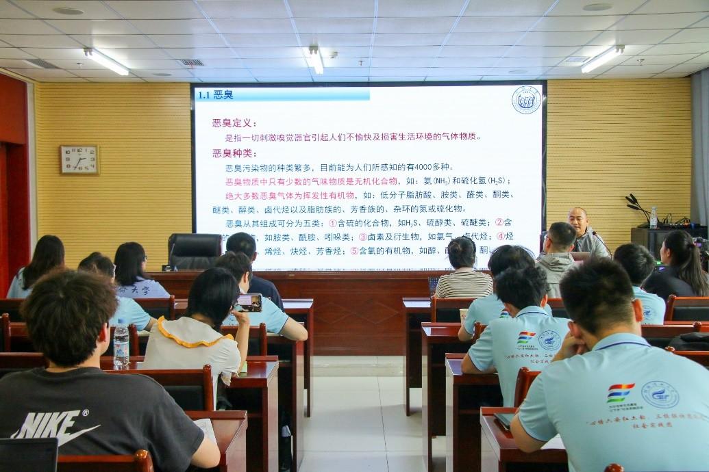 2024年7月15日下午,同济大学的刘涛教授为太阳集团2138网址、同济大学、皖西学院三校联袂社会实践团上了一堂有关发酵行业恶臭与VOCs控制技术的课程。本次课程主要包括六个方面的内容,分别是恶臭与VOCs及控制要求、VOCs与恶臭的控制方法、发酵废弃的特性与控制方案、吸附冷凝回收技术工程应用、循环干燥技术应用工程以及发酵尾气异味超净排放工程应用研究。