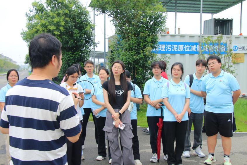 厂长柏彬带领三校实践团成员参观了臭氧调理污泥原味减量减害设备和厂内粗格栅、二沉池、生物池、高效沉淀池等设施,让实践团成员切实了解了污水处理每个环节的作用和整体流程。此外,厂长柏彬特别介绍了臭氧处理技术和光伏板在水质处理领域的前瞻性作用。利用臭氧处理技术,可去除水中80-90%之间的抗生素。光伏板一方面可遮挡阳光、防止温度过高,抑制藻类和红线虫的繁殖,保证后续水处理工艺的正常运行,另一方面也能发挥发电的次要作用,部分能量可以回收并利用。他指出,臭氧处理技术和光伏板的合理应用,能有效减少水中抗生素的病原体的浓度,提高水质安全性,推进新时代中国的绿水青山建设,值得提倡与推广。