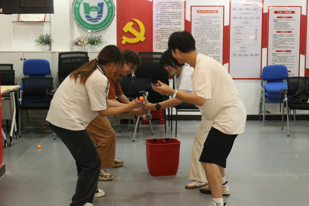 为促进同学们的相互交流,进一步丰富校园文化生活,增进同学们的友谊,缓解学生学业压力,提升心理素质及心理健康水平,使同学们在运动中得到锻炼、体验喜悦、享受乐趣,环境学院x-环心社于10月9日在雁山校区明园一站式学生社区,举办了“情绪满天飞,欢乐永相随”心理健康教育主题趣味运动会。本次运动会共分51个参赛小组,共有204名同学热情参与。