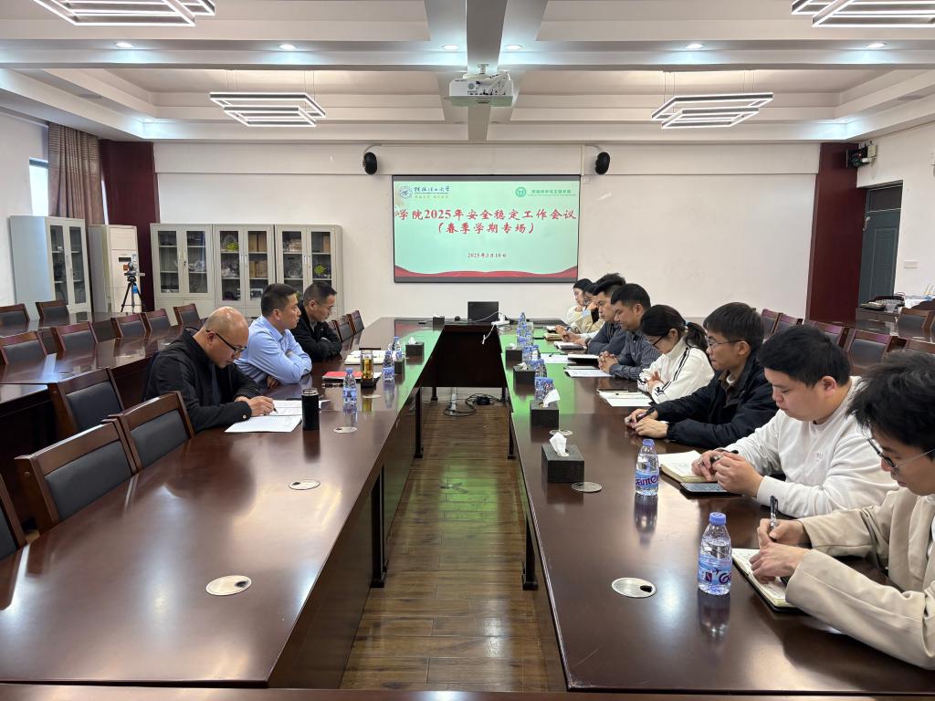 3月10日下午,学院在12407会议室召开2025年春季学期安全稳定工作会议,学院党委书记代武社出席会议,学院党委副书记叶大相主持会议,组织员及全体专兼职辅导员参会。