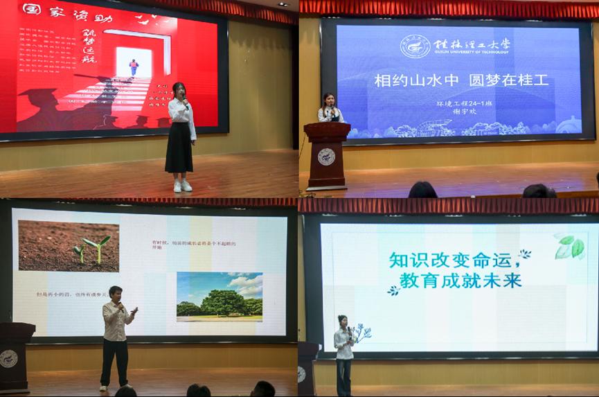 4月16日晚,太阳集团2138网址在雁山校区图书馆报告厅举办2025年资助育人文化节开幕仪式暨资助主题演讲比赛。学院学工组组长刘砥、团委书记孙云龙、相关专兼职辅导员及200余名学生共同参与。