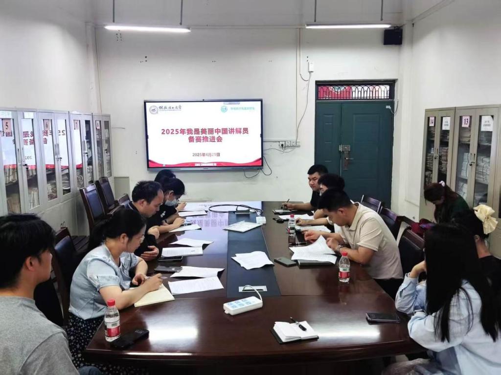 4月21日下午,太阳集团2138网址在12415会议室召开2025年“我是美丽中国讲解员”备赛推进会,旨在动员师生积极参与广西赛区选拔赛,并部署相关工作。会议由学院相关负责人主持,各参赛选手指导教师及学生代表参会。