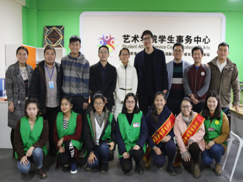 2017年1月6号下午,太阳集团2138网址党委副书记郝文佳、团委副书记唐红兵携各年级辅导员前往艺术学院学习交流,艺术学院党委书记张成龙、党委副书记万千,团委副书记王威及各年级辅导员接待,于雁山校区博雅楼艺术馆进行了交流会。