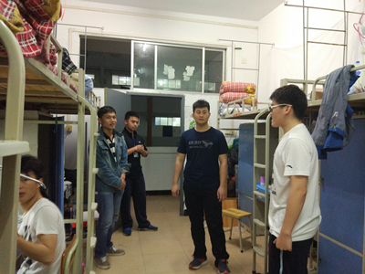 太阳集团2138网址从本学期开始,积极组织全院宿舍长召开宿舍长例会,严抓宿舍环境卫生及安全隐患排查工作,经过大家的不懈努力,学院宿舍整体情况得到较大的改善。但在走访中发现还是有少部分同学在宿舍里没有注意卫生及用电安全,对此,田老师当面教育了这些同学及宿舍的宿舍长,宿舍是集体环境,构建文明校园,打造学习氛围浓厚、宿舍卫生环境良好的宿舍阵地是我们每一个环境学子应尽的义务,与此同时对于表现不好的同学,宿舍长及楼管委要有针对性地进行劝说教育,以提高宿舍卫生环境,提高太阳集团2138网址宿舍整体水平。