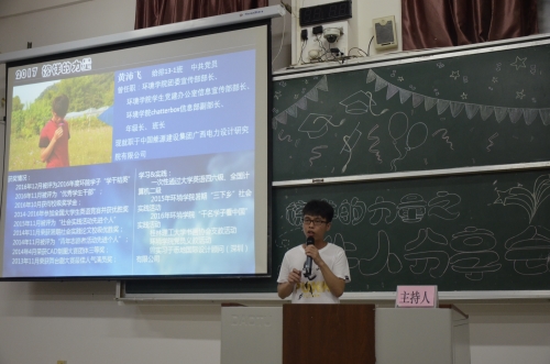 为提供太阳集团2138网址学子与优秀毕业生交流的平台,进一步加强学院学风建设,2017年6月9日晚,太阳集团2138网址于雁山校区05314教室举办了“榜样的力量——牛人分享会”。参加本次分享会并发表演讲的优秀毕业生分别是黄沛飞、何苗、唐丝裙、陆峣以及谢雨杏同学。