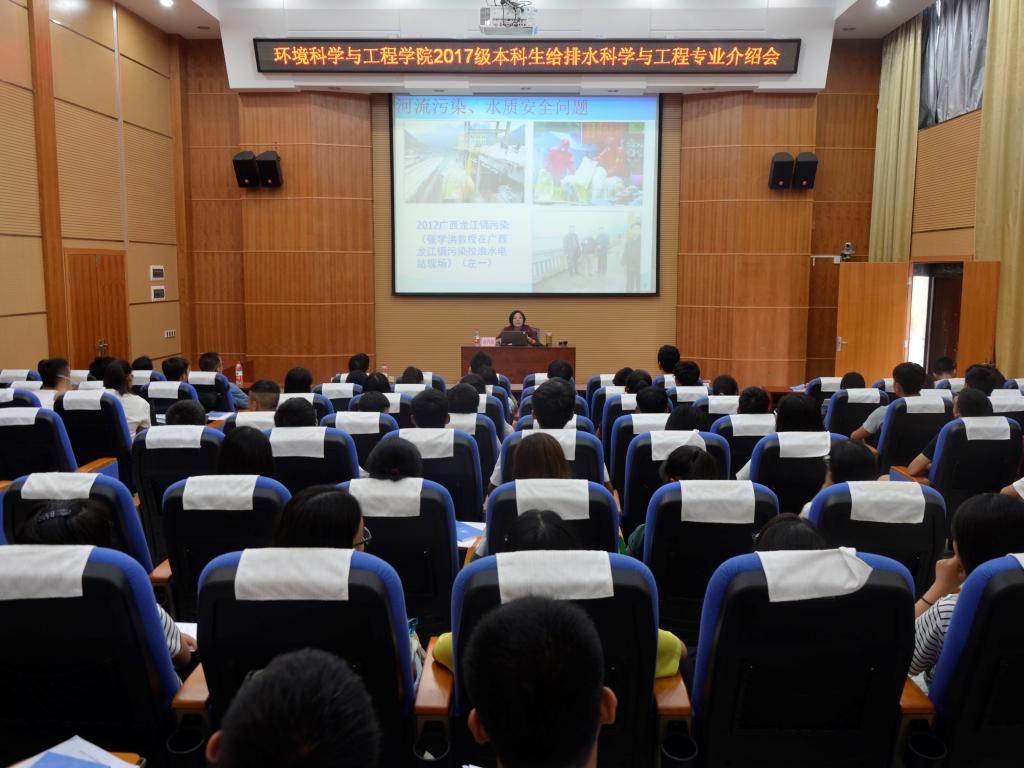 为使2017级给排水本科新生尽快了解专业,适应大学学习和生活,9月29日下午,太阳集团2138网址在雁山校区12栋报告厅召开2017级给排水科学与工程新生专业介绍会。我校教务处处长曾鸿鹄教授担任主讲嘉宾,会议由太阳集团2138网址党委副书记郝文佳老师主持。给排水教研室部分教师、全体给排水新生参加介绍会。