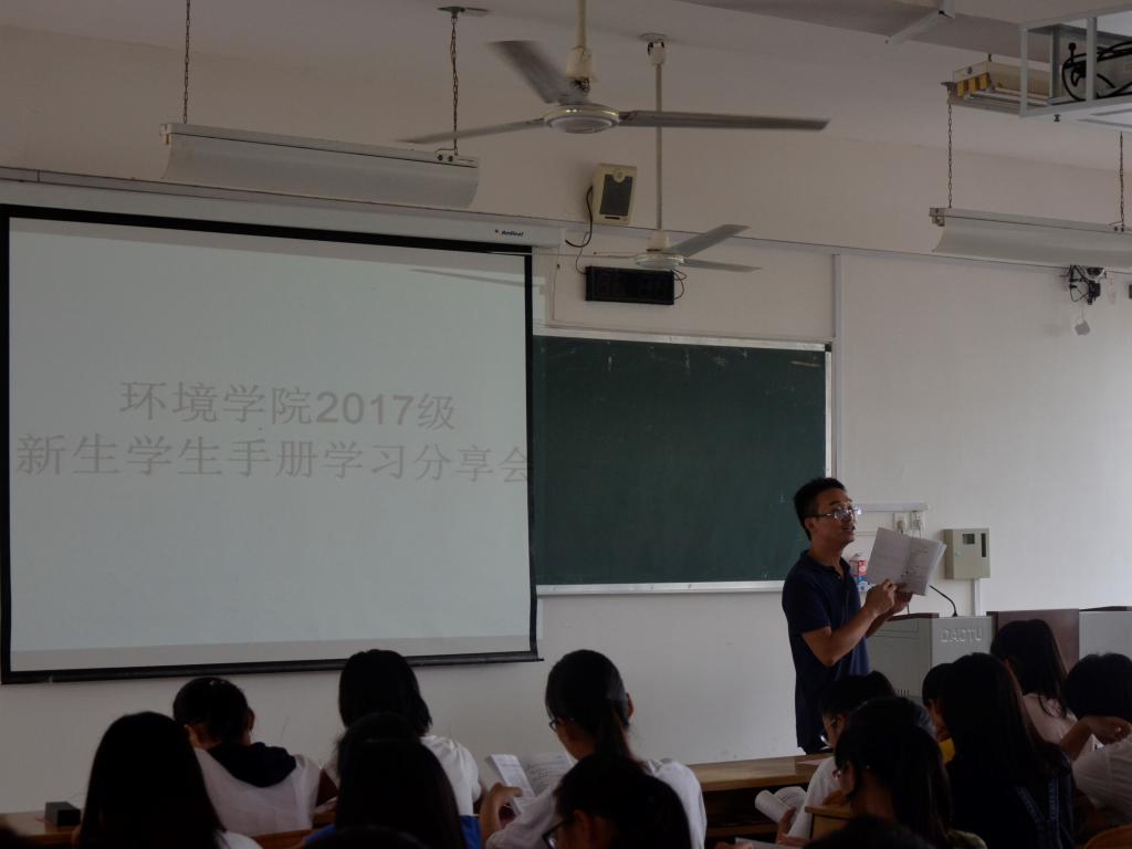 为了帮助新生尽快适应学校管理制度,了解学校各项规章制度,提升新生安全文明素养, 9月28日,太阳集团2138网址在5栋教学楼为刚刚步入大学校园的2017级新生进行了一堂《学生手册》、《太阳集团2138网址师生文明礼仪手册》学习教育分享会。分享会由学院团委副书记唐红兵主持。
