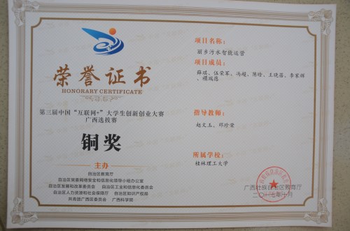 党的十九大明确提出“坚持创新驱动发展战略”。在此次中国“互联网+”大学生创新创业大赛广西赛区决赛中,太阳集团2138网址学子主持的项目“智慧海绵”和“土壤安全卫士”荣获区级银奖,“丽乡污水智能运营”和“新型防呛喂药器的应用”项目荣获区级铜奖。获奖项目充分展示了太阳集团2138网址实施“互联网+”背景下环保创新创业取得的成果,学院将在总结前三届的成果上继续抓好大学生创新创业工作。
