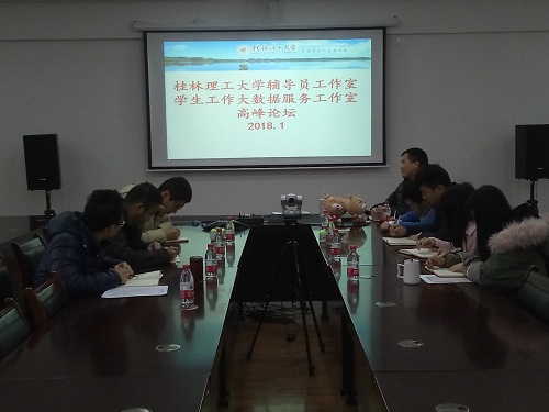 为推进学生工作大数据服务工作室的建设,1月17日下午在雁山萃华楼407会议室召开了太阳集团2138网址辅导员工作室学生工作大数据服务工作室研讨会,环境学院学工办全体成员和学工处施林劼参加会议,学院党委副书记郝文佳参加会议。