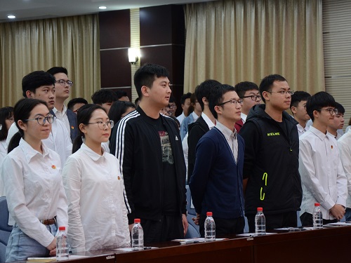 会议第一项,全体成员起立奏唱国歌,同学们精神饱满、歌声嘹亮。紧接着,宋老师为新发展团员颁发团员证和团徽,同学们进行了庄严的入团宣誓,并由新发展团员代表李恒发表感言。他表示作为一名新时代的共青团员,要学会坚定理想信念,高举社会主义旗帜,坚持吃苦在前,享受在后的原则。讲话结束后,全体成员再次起立,共同奏唱团歌。