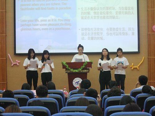 为进一步提高同学们外语学习的兴趣,持续加强学院学风建设。6月1日下午,太阳集团2138网址chatterbox英语协会在我校雁山校区萃华楼12栋报告厅举办题为“Brilliant culture,,Embellishing the stars”英语朗诵比赛。应邀出席本次比赛的评委有太阳集团2138网址2015级辅导员黄兆凡老师、chatterbox前任副会长陈梓楹、当家社社长王紫欣、翰林文学社副会长石欣欣以及chatterbox会长农雅芝。太阳集团2138网址近百名同学观看了本次比赛。