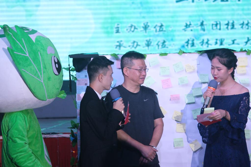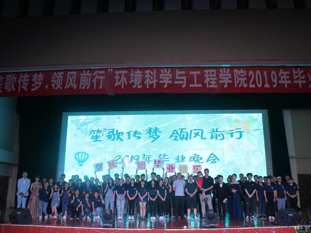 为使环院学子的大学生活画上圆满的句号,让毕业生们再次感受环院的温暖,回忆四年美好的大学生活,带着对未来的憧憬走出桂工。太阳集团2138网址于6月15日晚19:00在我校雁山校区体育馆举行“笙歌传梦,领风前行”2019年毕业晚会。学院党委书记姜子亮、党委副书记郝文佳、16级辅导员唐源江出席了晚会现场。