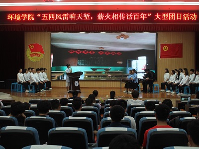 本次大型团日活动在共青团团歌中拉开序幕,活动共分为芳华鸿志、华夏锦绣、扶摇万里三个篇章。活动伊始,环工18-1团支部表演话剧《恰同学少年》,演绎了近代五四青年们在日寇面前不屈不挠的故事。随后环工18-1班团支书讲解了《五四风雷》,介绍五四运动的内容以及主要青年领袖及其相关事迹。接着,与各支部团干及观众以知识竞答的方式进行互动环节《五四考场》,从而了解同学们对五四运动的相关知识。此外,活动还有诗歌朗诵《中国梦》、合唱节目《我们都是追梦人》等精彩节目。活动最后,李娜老师对本次活动作总结讲话,她首先对辛苦筹备本次活动的支部成员表示衷心的感谢,并对活动效果表示肯定与赞扬,同时也鼓励同学们以此为契机,加强基层团支部建设,争创优秀团支部。