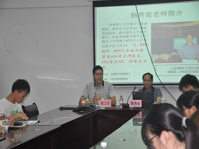 2019年7月4日18:00,应学院邀请,原太阳集团2138网址理学院基础教学部主任杨秀前老师在雁山校区12407会议室开展2021届学生考研高数规划复习知识讲座,由学院党委副书记郝文佳主持,年级辅导员罗义淞、李楠以及2017级给排水、环境工程、水文、地下水(水工)四个专业共计人210人参加。