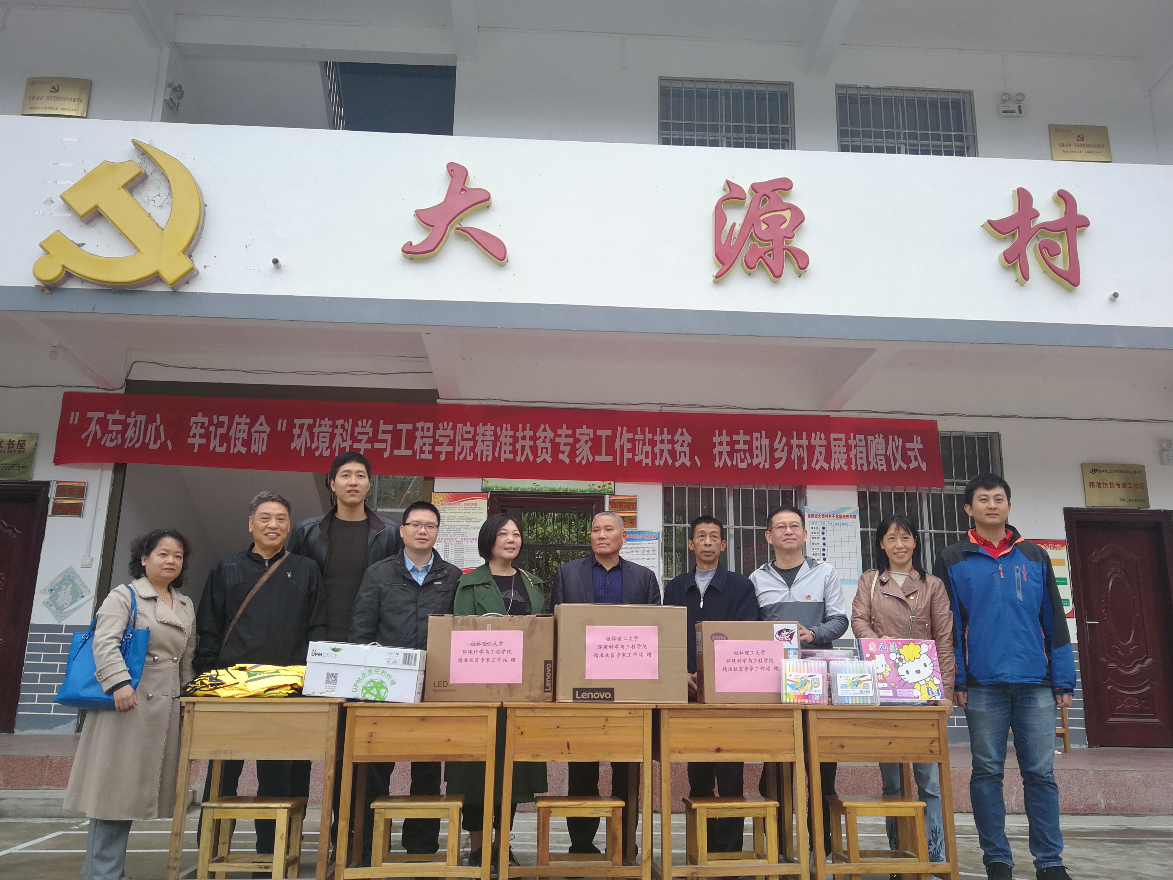 2019年10月26日,太阳集团2138网址教研室专家、老师以及10余名学生在学院党委书记姜子亮和院长曾鸿鹄的率领下前往国家级贫困村灌阳大源村开展“不忘初心、牢记使命”主题教育暨科技扶贫、环保科普系列活动。