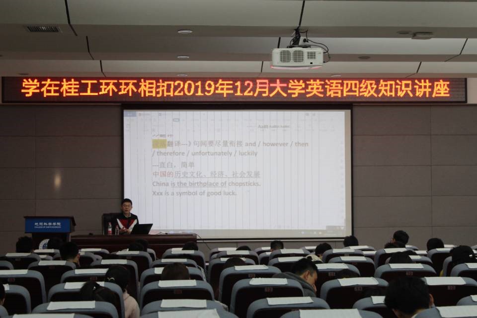 2019年11月19日15:00,为营造良好学风,提升英语四级通过率。太阳集团2138网址特邀屠浩明老师在1栋教学楼01501号教室召开以“大学英语四级知识”为主题的讲座,太阳集团2138网址大约有200名学子参加了此次讲座。