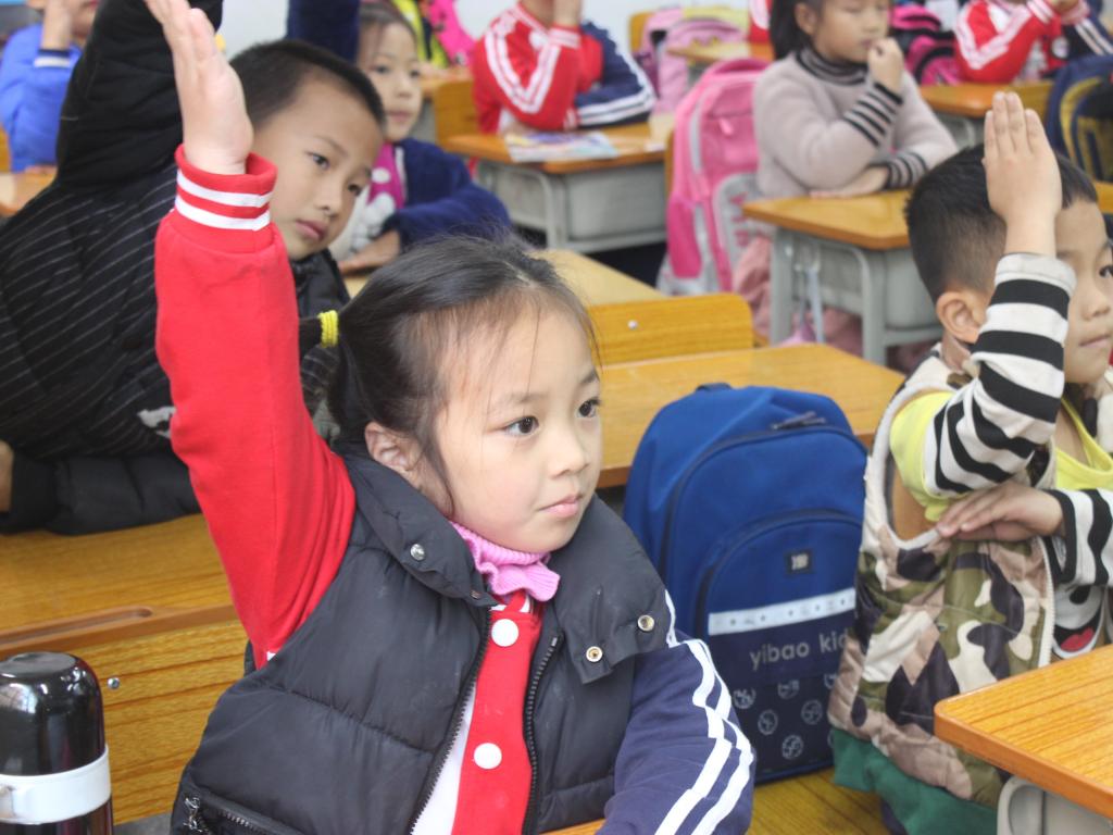 当天下午两点,学生志愿队伍到达君武小学。经过简单的熟悉校园和任务分配后,本次支教活动有序拉开序幕。志愿者分成了四组队伍,分别面向一年级1班,一年级3班,三年级1班和四年级2班。开始时,小朋友们略显羞涩,在志愿者讲解环保PPT并一起观看环保动画视频后,小朋友们热情高涨,与志愿者们的相处更加融洽。随后,志愿者们对小朋友进行了一问一答的环保知识游戏,对回答问题的小朋友分发了小礼品。在举手抢答的过程中,小朋友们对垃圾分类、保护环境有了进一步的认知,学到了丰富的环保知识,课堂氛围融洽。为使太阳集团2138网址的环保理念“袋袋”相传,志愿者们发放了太阳集团2138网址专属环保小黄袋,并和小朋友们进行了合影留念。