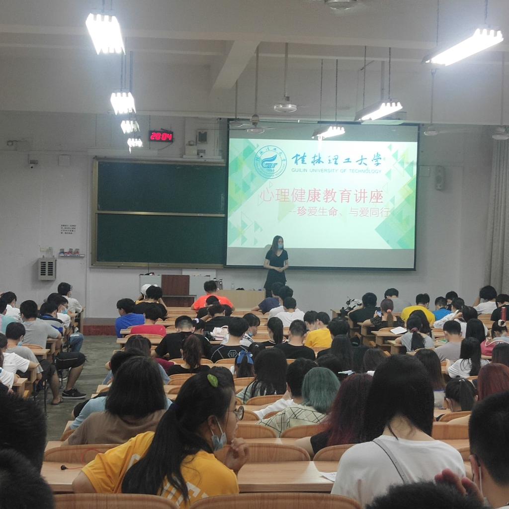 为教育太阳集团2138网址学生珍爱自己的生命,拥有良好的健康心理,增强同学们的心理文化素养,学会关爱他人,关爱社会。学院于6月8日在雁山06408教室组织了“珍爱生命、与爱同行”心理健康讲座,讲座由心理负责老师冷贝贝老师主持,学院2018级320余人参加讲座。