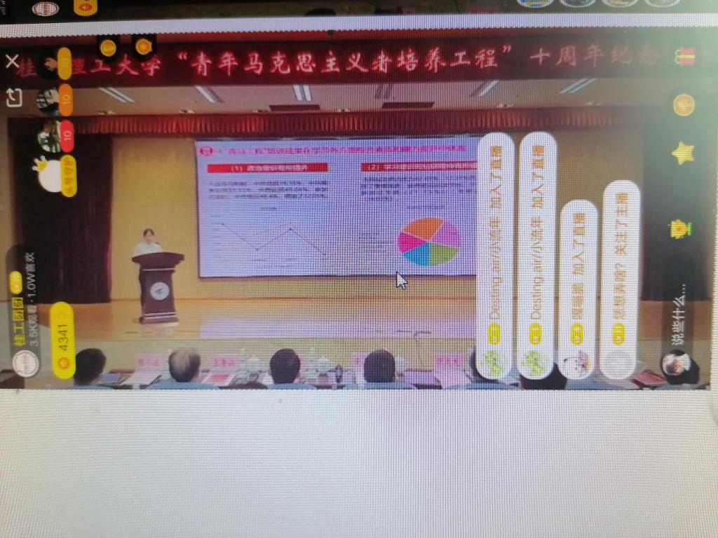 其中,优秀学员代表黄雷分享了培训心得,表示通过培训深化了对马克思主义及中国化理论成果的认识,将积极参加青年大学习,投身共青团改革,做马克思主义的坚定信仰者、忠实践行者。作为一个共青团员,从对青年马克思主义者培训工程没有一点概念到舍友参加青马培训,我从她那里了解了该工程是培养桂工优秀共青团员的,我逐渐对该工程高兴趣,今天有幸参加青年马克思主义者培训工程的十周年纪念活动,尽管只是线上分享,我没有感受到纪念分享会的氛围,我还是很高兴的。
