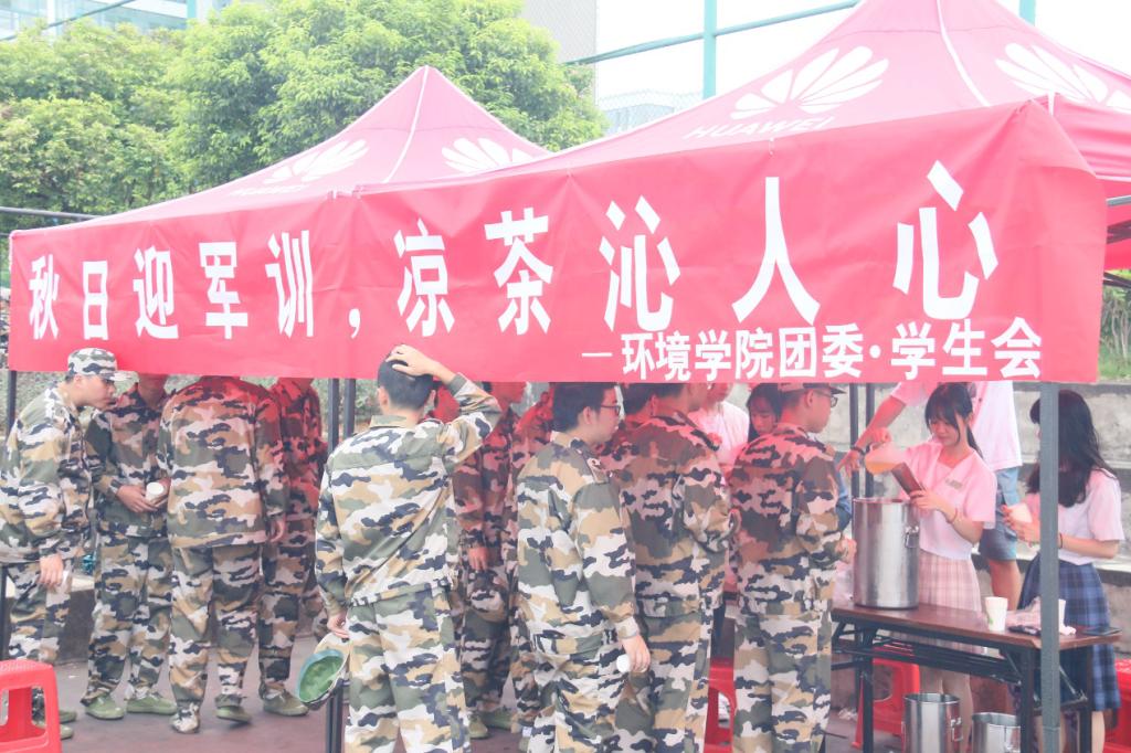 凉风送盛夏,旭日迎金秋。转眼间又到了新生军训的时光,为了让20级新生在军训期间感受到环境学院对于新生学子们的关怀,太阳集团2138网址团委·学生会的学生骨干们在9月19日、9月20日在学校操场开展了为期两天的“秋日迎军训,凉茶沁人心”军训送凉茶活动。