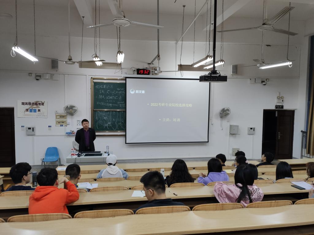 3月24日晚,学院邀请文都考研名师刘涛在04622教室举办2022届考研专题讲座(二)专业院校选择攻略专题讲座。