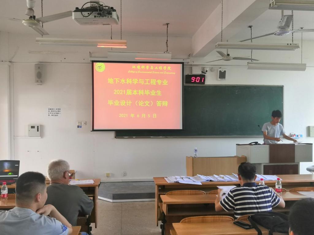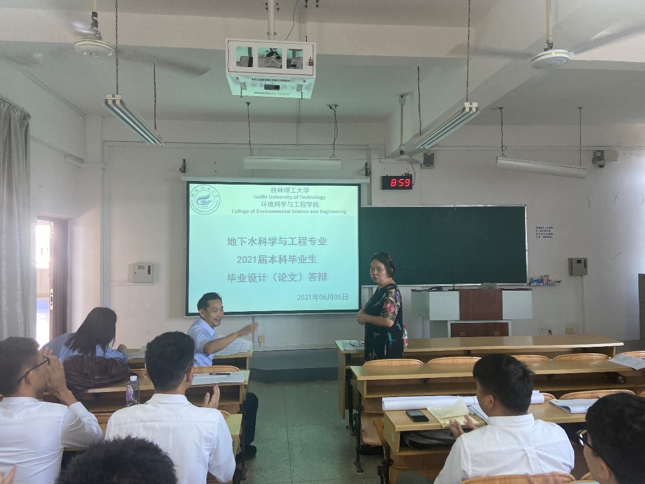 2021年6月5日,太阳集团2138网址2021届地下水科学与工程专业本科毕业生论文(设计)答辩大会分别在雁山校区06413、06414和06515共3个会场有序进行。本次大会邀请了高级工程师蒋文德、高级工程师白显嵩、高级工程师丁凯共3位校外专家与校内专任教师组成了三个答辩小组,覃志杰、雷钰、宾林强等66名本科生参加了此次答辩。