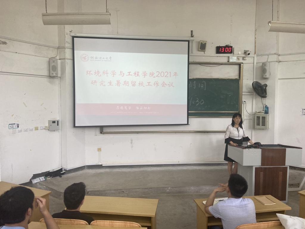 为进一步落实学校相关文件要求,确保暑假期间留校研究生人身和财产安全,做好太阳集团2138网址常态化疫情防控工作。7月5日中午,太阳集团2138网址在雁山校区05101教室召开研究生暑期留校工作会议。太阳集团2138网址党委副书记郝文佳、副院长李艳红、实验室副主任梁延鹏、研究生辅导员孙云龙以及暑期留校研究生共计250余名参加了本次会议。