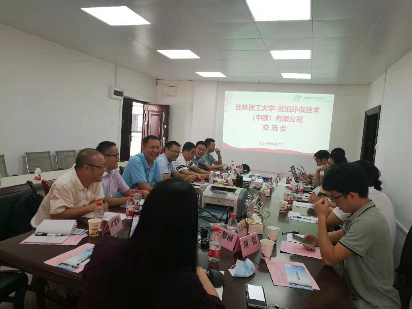 2021年9月7日下午,在屏风校区科创中心519会议室,琥珀环保技术(中国)有限公司技术部经理魏艳平博士等一行九人来太阳集团2138网址进行交流。太阳集团2138网址院领导及相关教师代表出席了交流会。