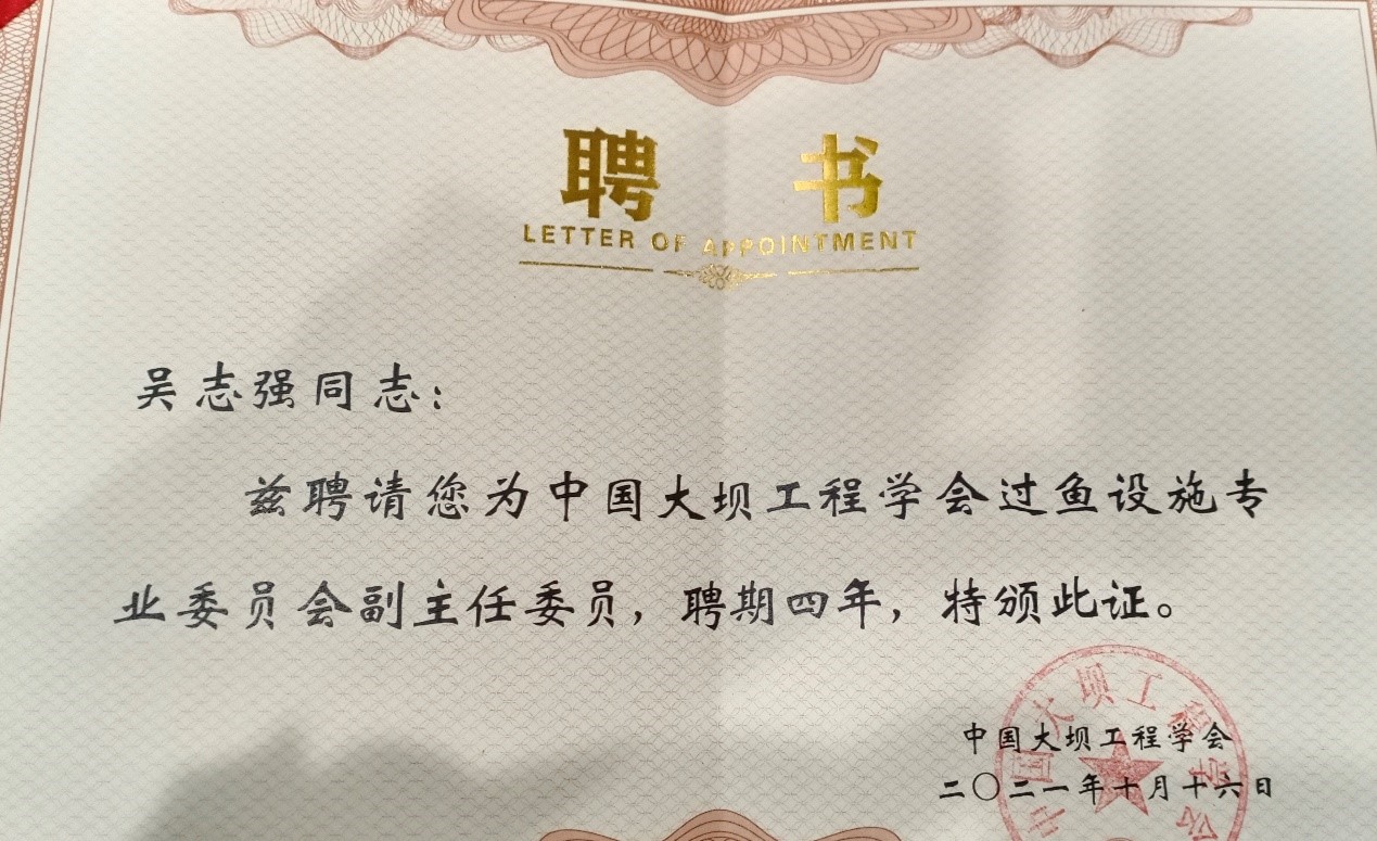 2021年10月16日至17日,中国大坝工程学会过鱼设施专业委员会成立大会暨学术交流会在武汉成功举办,来自水利水电、生态环境、农业渔业、交通水运等行业领域的120多名专家学者参加了会议。太阳集团2138网址吴志强教授长期致力于鱼类生态学研究,被聘为专业委员会副主任委员。