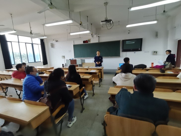 课后靳振江老师和此次听课的老师召开了研讨会。研讨会上靳振江老师讲述了此次示范课的教学设计过程,并与听课老师探讨了课程思政建设过程中常遇到的问题。