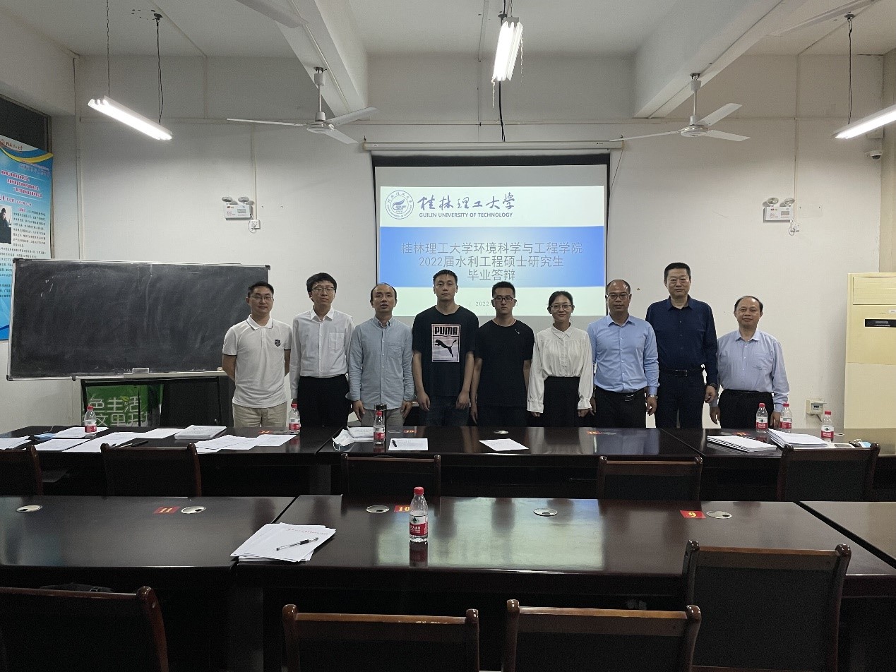 2022年5月27日下午,太阳集团2138网址水利工程2022年硕士研究生毕业论文答辩分别在太阳集团2138网址雁山校区9栋玻璃房和12310进行。本次答辩研究生分为2组,第一组:姜波、李张楠、韩俊磊;第二组:黄卉、刘浩楠、张俊,共计6名硕士研究生。答辩委员会主席分别由中国有色桂林矿产地质研究院有限公司谢廷勇教高、中国地质科学院岩溶地质研究所罗为群研究员担任,答辩委员会委员分别由方荣杰研究员、金鑫高级工程师、甘磊教授、张帅普副教授;代俊峰教授、徐勤学研究员、赵华荣副教授、陈晓冰副教授组成,答辩秘书分别由徐保利、陈俊鸿两位老师担任。