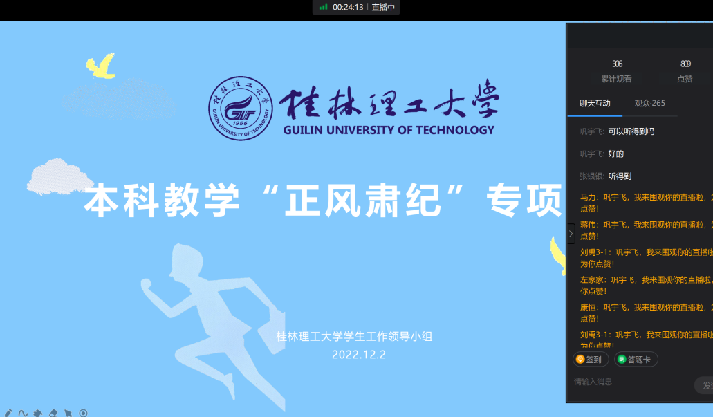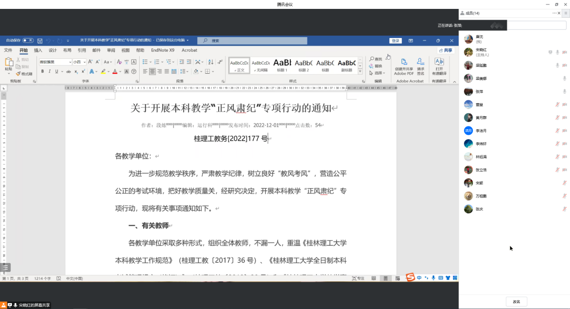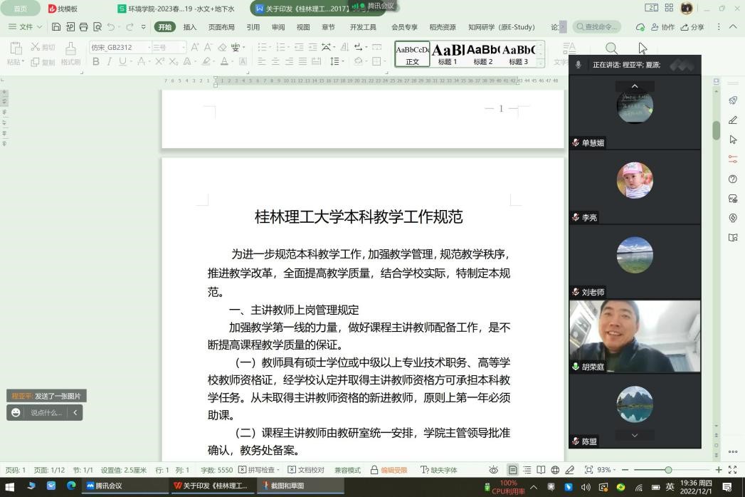 专任教师集中学习了《太阳集团2138网址本科教学工作规范》(桂理工教〔2017〕36号)、《太阳集团2138网址全日制本科考试管理规定(修订)》(桂理工教〔2019〕20号)和《太阳集团2138网址教学事故认定与处理办法》(桂理工教〔2010〕3号)等规章制度。学生通过召开主题班会等形式重温了《太阳集团2138网址学生学习管理规定》(桂理工教〔2009〕27号)、《太阳集团2138网址全日制本科考试管理规定(修订)》(桂理工教〔2019〕20号)等规章制度。通过开展此次专项行动,教师的教学工作规范意识进一步加强。学生的上课迟到早退减少,考试无作弊现象,学习气氛更加浓厚。 环境学院“正风肃纪”专项行动取得了初步的效果。