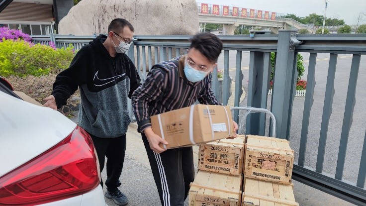 实验室老师搬运和消杀学生实验物资(一)